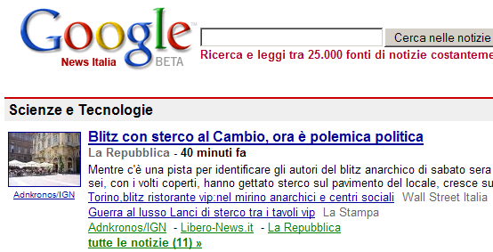 Non è la prima lieve imprecisione che affligge questo servizio. Come ho già avuto modo di rilevare in passato, l’algoritmo di collocazione delle notizie commette alcuni errori che trovano formale (ma non sostanziale) giustificazione nel fatto che la versione italiana di Google News sfoggia da anni l’etichetta Beta, che è sparita dalle edizioni anglofone: USA, UK, Australia, Nuova Zelanda sembrano infatti aver superato da tempo questa fase. Da notare che nei Paesi in cui non si parla solamente l’inglese convivono edizioni definitive e versioni afflitte da betismo: in Canada, ad esempio, l’edizione in lingua inglese è definitiva, mentre è ancora in Beta quella in lingua francese, che si trova nelle medesime condizioni del servizio degli Estados Unidos (e di tutte quelle in lingua non inglese).
