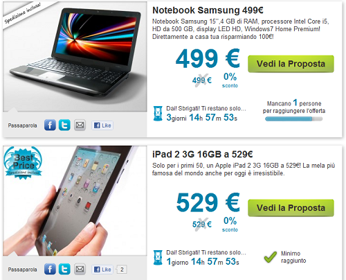 Tra le proposte del giorno di un sito web che propone sconti incredibili fino al 90%, ci sono anche inviti ad affrettarsi (dai! sbrigati!) ad acquistare oggetti offerti al prezzo di listino, che si può trovare in qualunque altro sito o punto vendita.