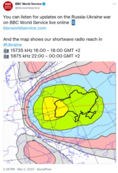 Può sembrare paradossale che ciò accada nel 2022, nell’era in cui tutto è interconnesso attraverso Internet via cavo, via radio e via satellite, ma se qualcuno applica restrizioni o blocchi alle tecnologie digitali, una delle alternative più immediate è passare per l’utilizzo di una tecnologia non digitale. Dall’inizio dell’invasione in Ucraina, BBC ha registrato un’impennata nell’audience nei territori interessati: a fine febbraio, in particolare, i visitatori del sito in lingua ucraina hanno raggiunto quota 3,9 milioni, mentre quello in lingua russa è arrivato a 10,7 milioni (il triplo della media dei contatti registrati nel 2022).