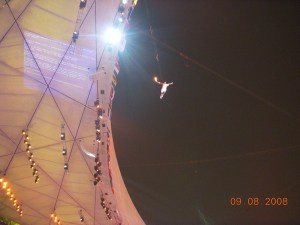 Guardate bene a sinistra… sì, è quello che sembra! E’ proprio l’odiata Blue Screen of Death, ossia la schermata blu con un bell’errore di Windows, che mentre l’ultimo tedoforo Li Ning “volava” verso la torcia ha fatto bella mostra di se’ comunicando al pubblico presente e al mondo intero: