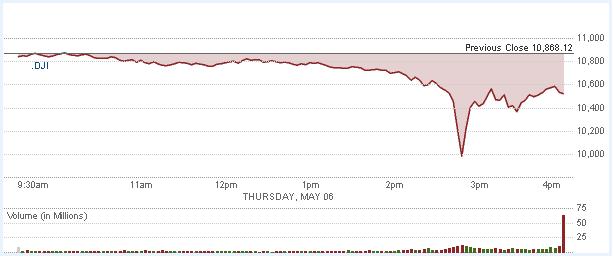According to multiple sources, a trader entered a “b” for billion instead of an “m” for million in a trade possibly involving Procter & Gamble, a component in the Dow. (CNBC’s Jim Cramer noted suspicious price movement in P&G stock on air during the height of the market selloff).