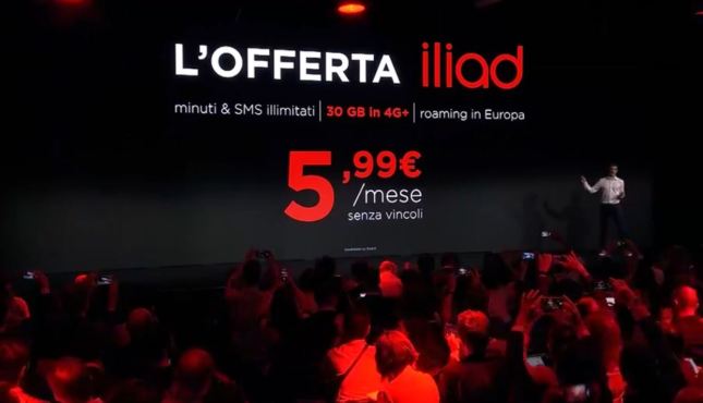Sul mercato della telefonia mobile è arrivato il (nuovo) quarto operatore, Iliad. E’ da circa due anni che se ne parla (qui ne ho scritto a settembre 2016), ora dalle parole si passa ai fatti. In Francia, dove è nata l’azienda fondata da Xavier Niel, è riuscita a conquistare importanti fette di mercato offrendo tariffe competitive con il marchio Free. In Italia Iliad parte in modo aggressivo: minuti e sms illimitati, 30 GB (di cui 2 in roaming UE) per un costo mensile di 5,99 euro (non si poteva fare direttamente 6 euro?), che includono le chiamate verso numerazioni di telefonia fissa di 65 Paesi e fisso-mobile USA e Canada. La sim costa 9.99 euro (non si poteva fare direttamente 10 euro?). Il resto del listino è pubblicato nella brochure prezzi.