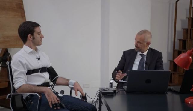 Questo fotogramma potrebbe sembrare estratto da un video di Fabio Rovazzi, invece proviene dalla diretta streaming che vede protagonista Benedetto Levi – amministratore delegato di Iliad – collegato ad un poligrafo (o macchina della verità) mentre risponde ad una sequenza di domande del prof. Maurizio Cusimano, antropologo forense. Il video, di ieri, aveva l’obiettivo dichiarato di confermare la reputazione di trasparenza e chiarezza che l’operatore telefonico persegue e rivendica da quando si è presentato sul mercato italiano e che in questi giorni ha dichiarato di aver raggiunto il suo primo milione di clienti.