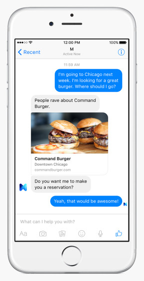 Naturalmente M viene presentato come qualcosa di più degli assistenti offerti dai competitor, per ora si parla di un’applicazione di intelligenza artificiale calata in Messenger (risponderà via chat a chi lo contatterà, essendo disponibile in mezzo agli altri amici di Facebook), ma nel tempo forse potrebbe avvicinarsi alla Samantha del film Lei (Her).