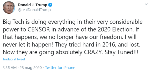 I social network dovrebbero fermare prima la trasmissione di questi messaggi, per non rendersene veicolo? Questo aspetto non è affatto banale e va analizzato con attenzione, perché al momento non esiste una risposta assolutamente centrata: Facebook o Twitter, per nominare le realtà che hanno preso provvedimenti in seguito alla pubblicazione di alcuni messaggi da parte di Donald Trump, sono aziende private e non sono testate giornalistiche (che pure si appoggiano a Internet e ai social per sfruttarli come cassa di risonanza), non hanno un editore o un direttore responsabile dei contenuti pubblicati.