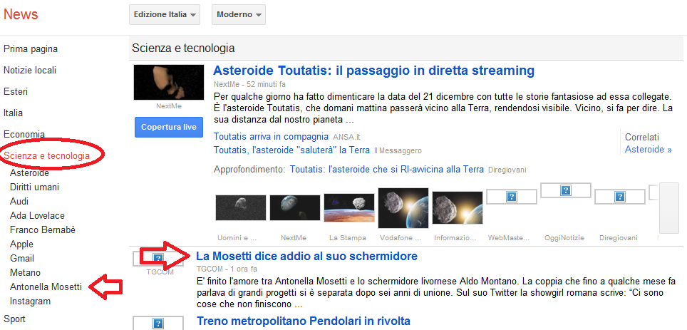 Per Google news, gossip e cronaca giudiziaria sono “Scienza e Tecnologia”
